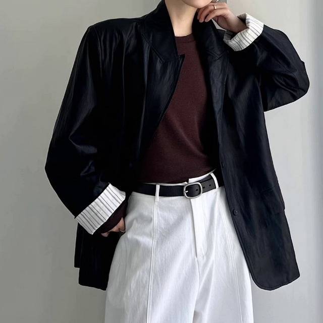 程よくゆとりのあるシルエットが羽織るだけで 抜け感のあるスタイルを演出してくれます。 裏地の袖口にはストライプのデザインがありさりげなく存在感があります。 ◼サイズ F:胸囲114cm / 着丈75cm / 袖丈66cm / 裾幅122cm ※サイズ表記につきまして、約1~3cmの誤差が出る場合がございます。 ◼素材 PU ◼カラー ブラック、グレー ◼モデル Mサイズ着用 身長168cm ◼お届けについて ご決済から発送まで1~3週間前後のお時間をいただいております。 (※商品の状況によっては、3週間以上かかる場合もございます。) ◼注意事項 ・タイミングによっては 商品在庫切れにより 注文キャンセルとさせていただく恐れもございますので、予めご了承くださいませ。 ・こちらは輸入品となります。日本製とは検品基準が異なる為、 新品未使用品でもごくわずかな汚れや ほつれがある場合もございます。 ・仕入れ工場を変えることがあるため、記載サイズと若干異なる場合がございます。 ・商品の色味は、お手持ちのスマートフォンの画面によって実物と若干異なる 場合がございます。 ・イメージ違いやサイズ交換等、お客さまご都合による交換、返品は対応出来かねます。 ———————————— ご注文前にご確認ください →https://shop.lumiree-official.com/about ————————————