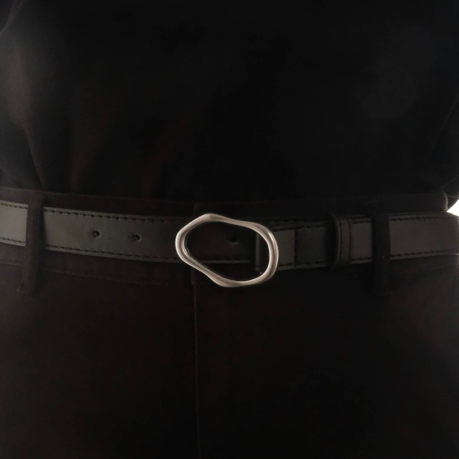 ニュアンスカーブなバックルが魅力のベルト。