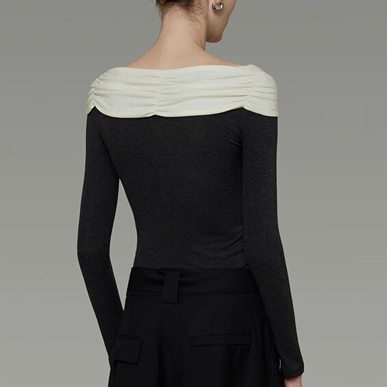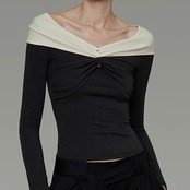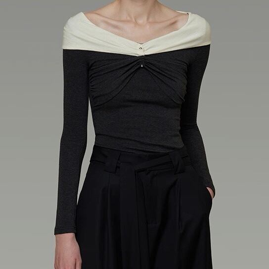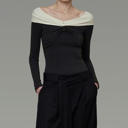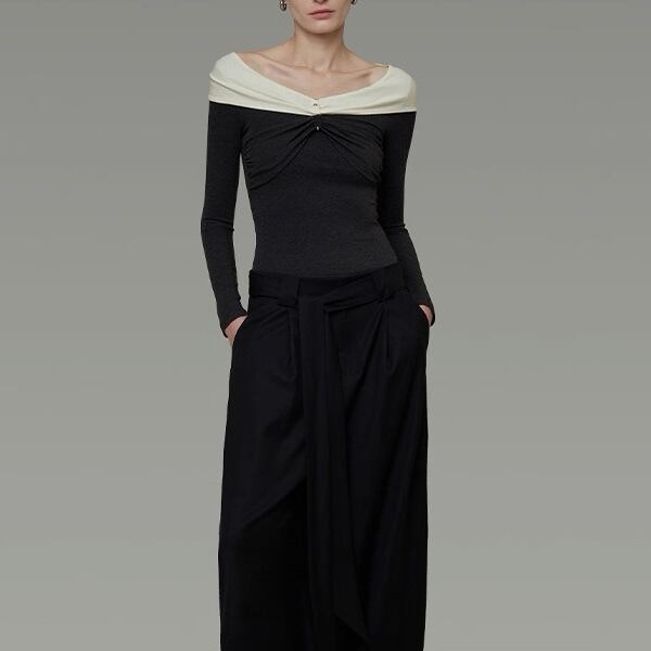ショルダー部分と柔らかなドレープが女性らしいシルエットを演出。デニムにもスカートにも◎。