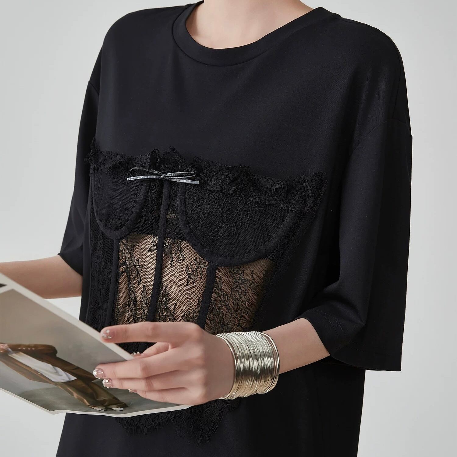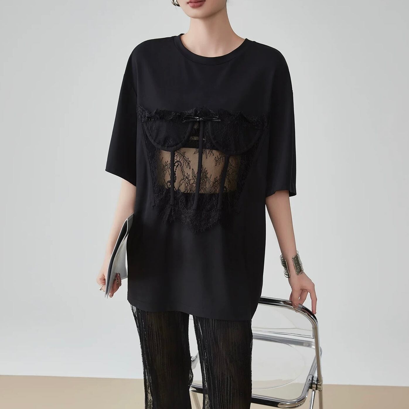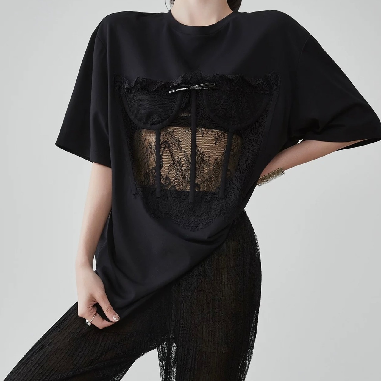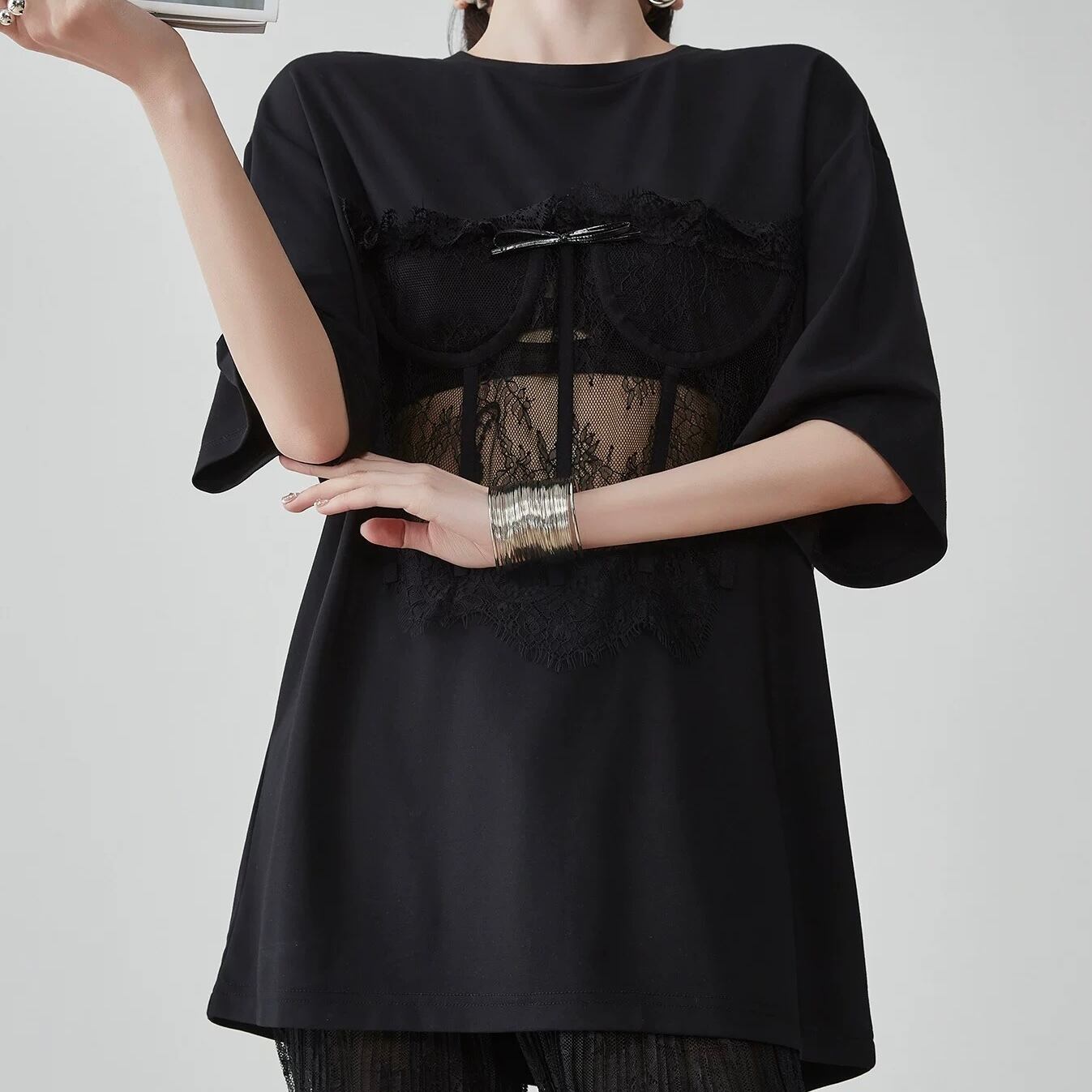 レースがありながらもオーバーシルエットなので