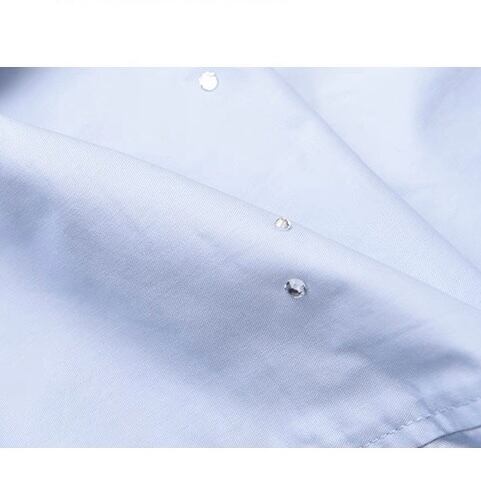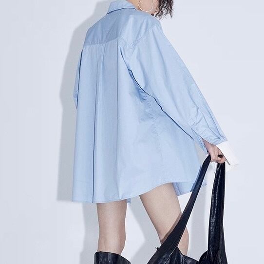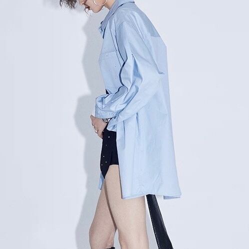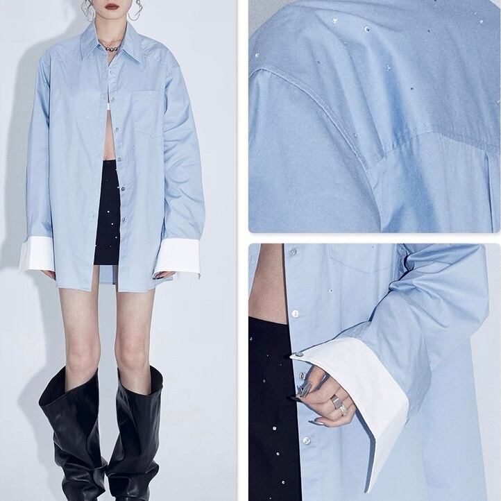 コントラストカフスとラインストーンが目を惹くオーバーサイズシャツ。