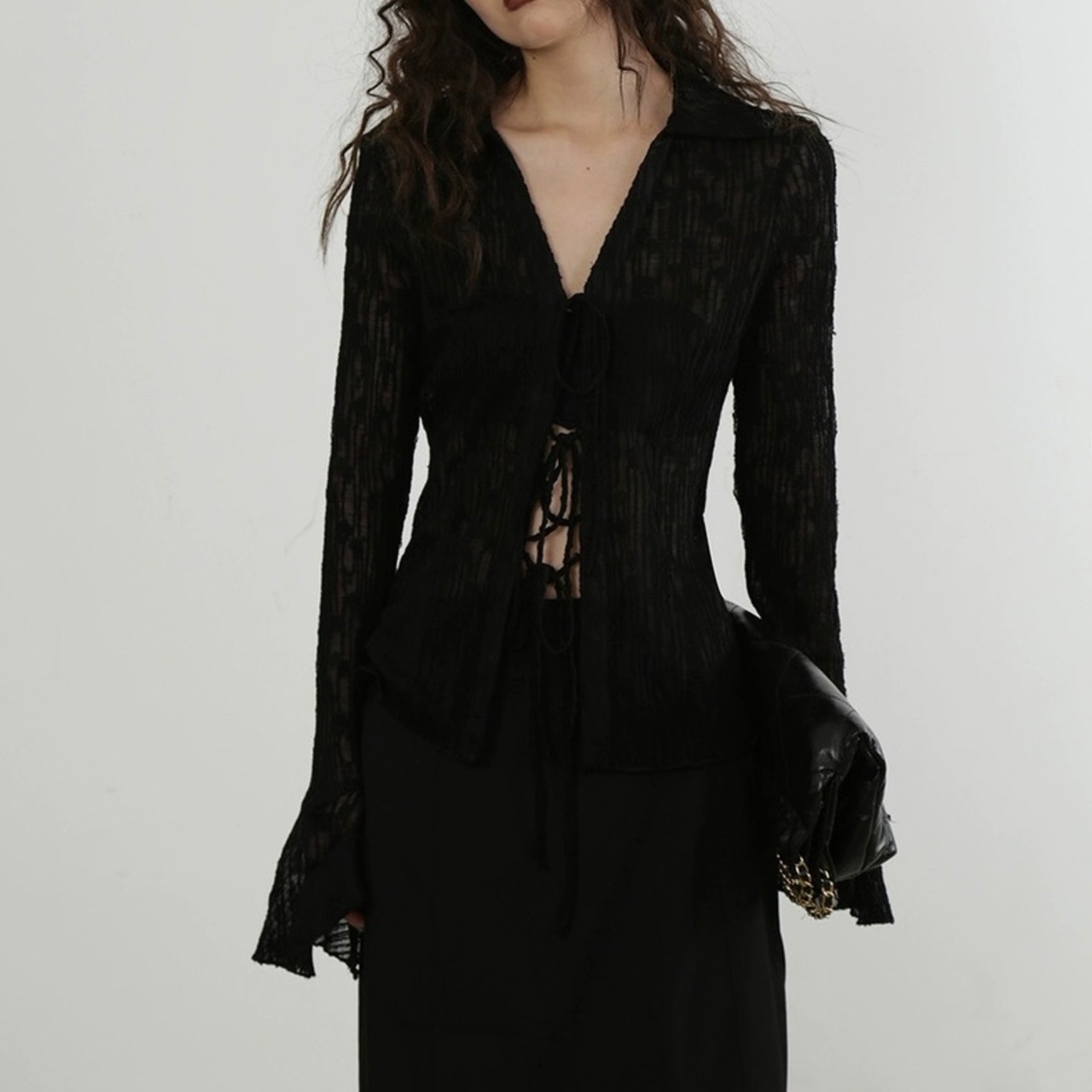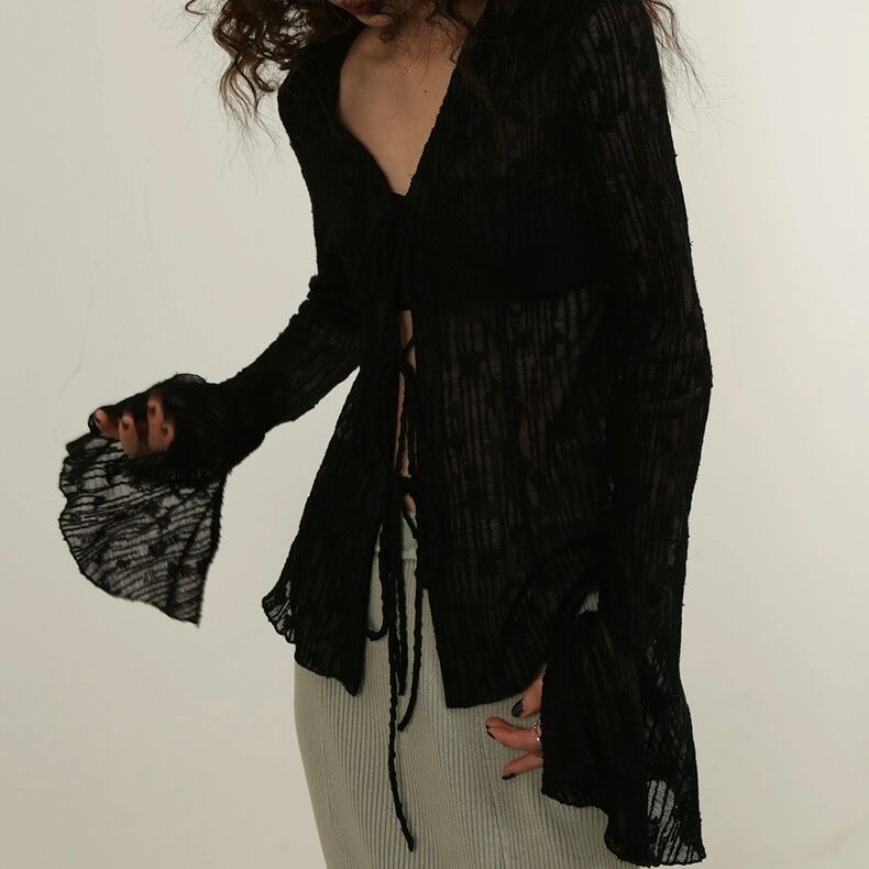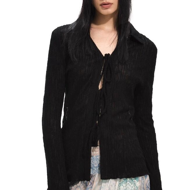 フロントの結び紐がアクセントになり、シンプルなデザインながらも