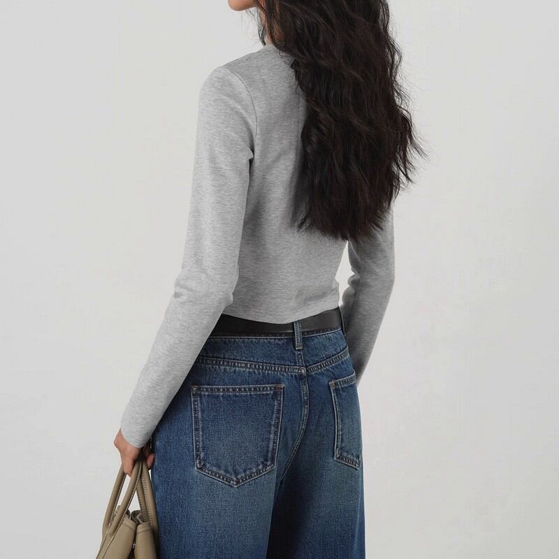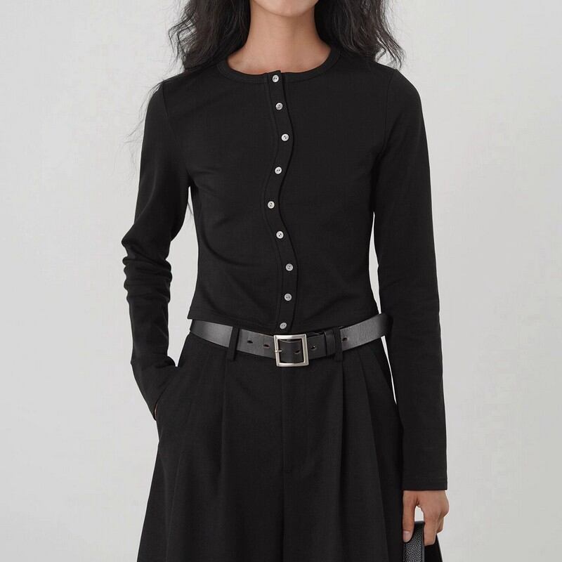 前立てのボタンが緩やかなカーブを描くリブトップ。