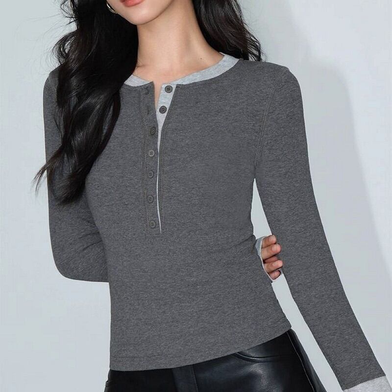 ヘンリーネックをリブ素材で仕上げた定番トップス。