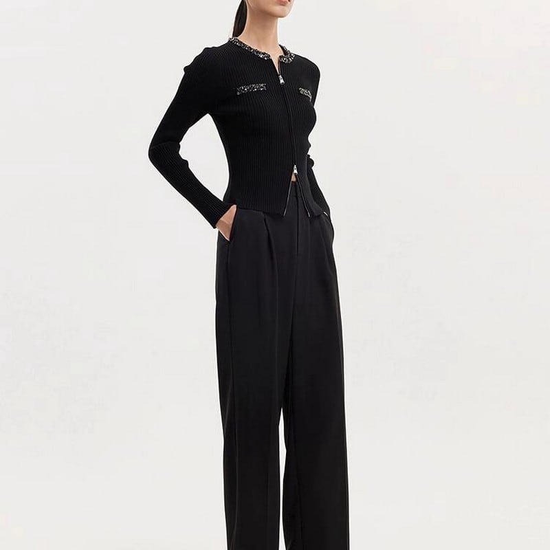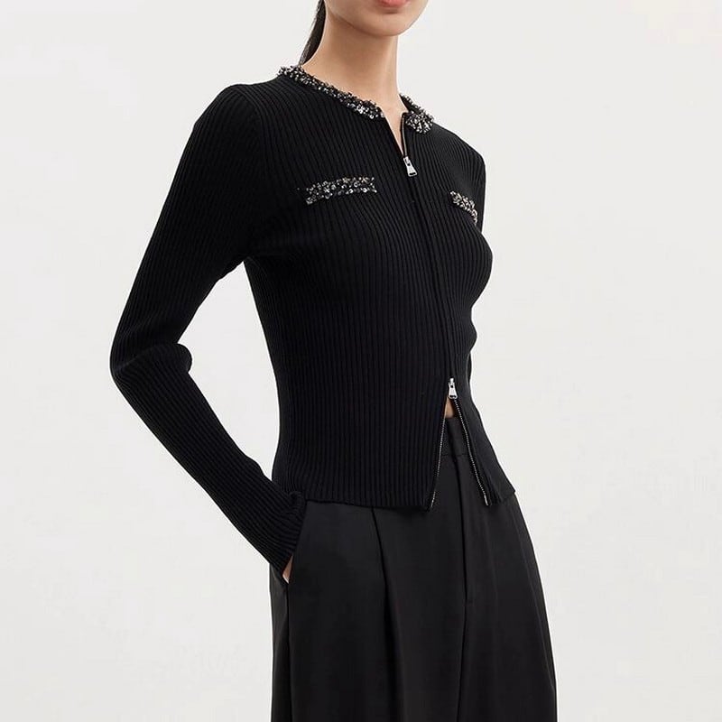 首元と胸元に施したビジューのディテールが特徴です。