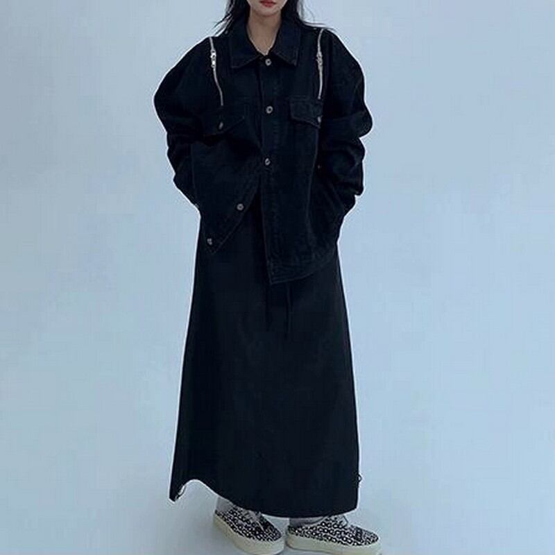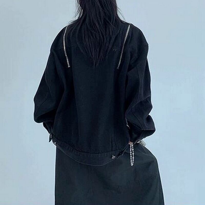 肩にあしらったチェーンディテールがモードなアクセントになっています。