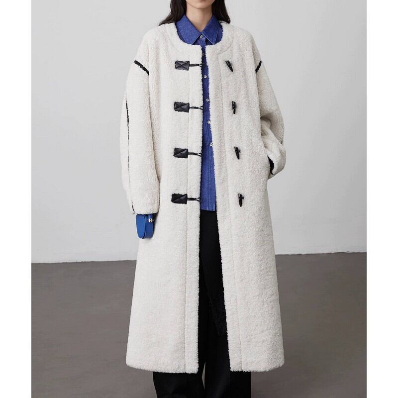 ゆったりとしたシルエットで体を包み込み、冬のお出かけに上品な暖かさを添えてくれる一着です。