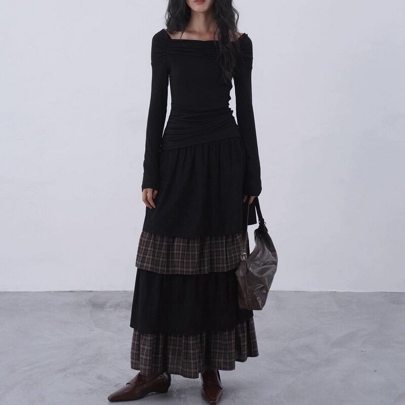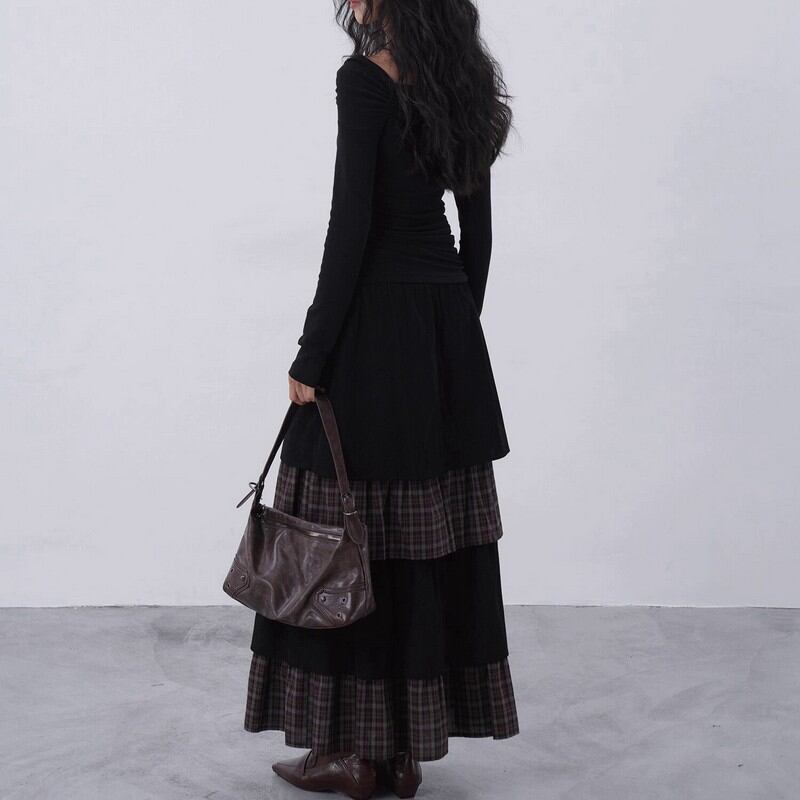 身体に寄り添う柔らかなリブ素材で、女性らしいしなやかさを演出します。