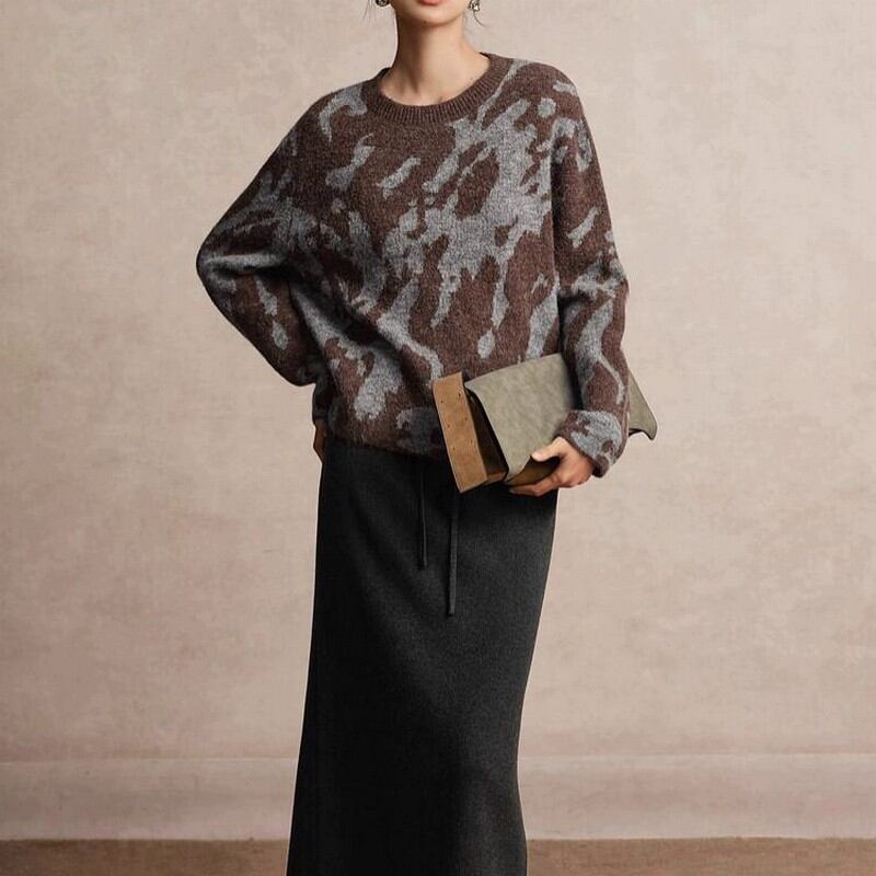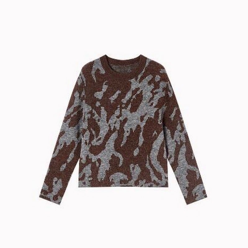 落ち着いたトーンのブラウンとグレーで表現された抽象的なジャガード柄が、