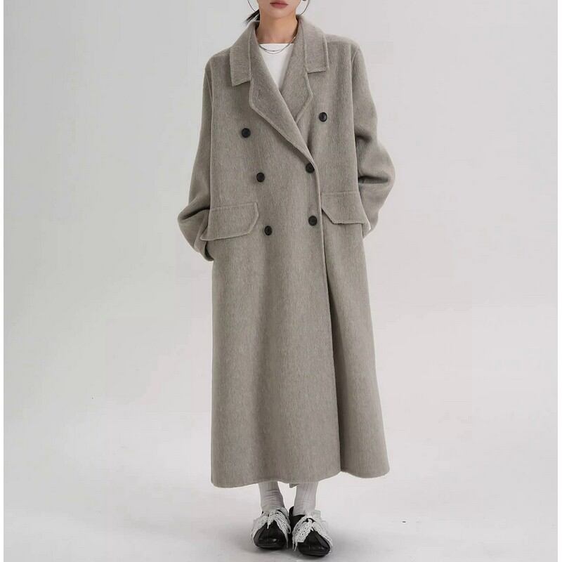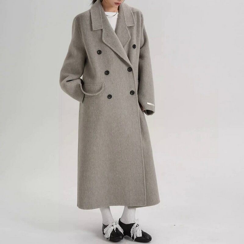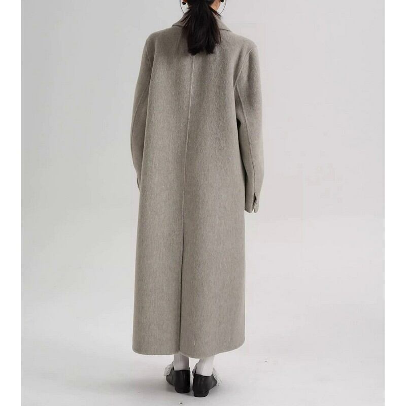 クラシックなダブルボタンデザインを、ゆとりのあるシルエットで仕立てたロングコート。