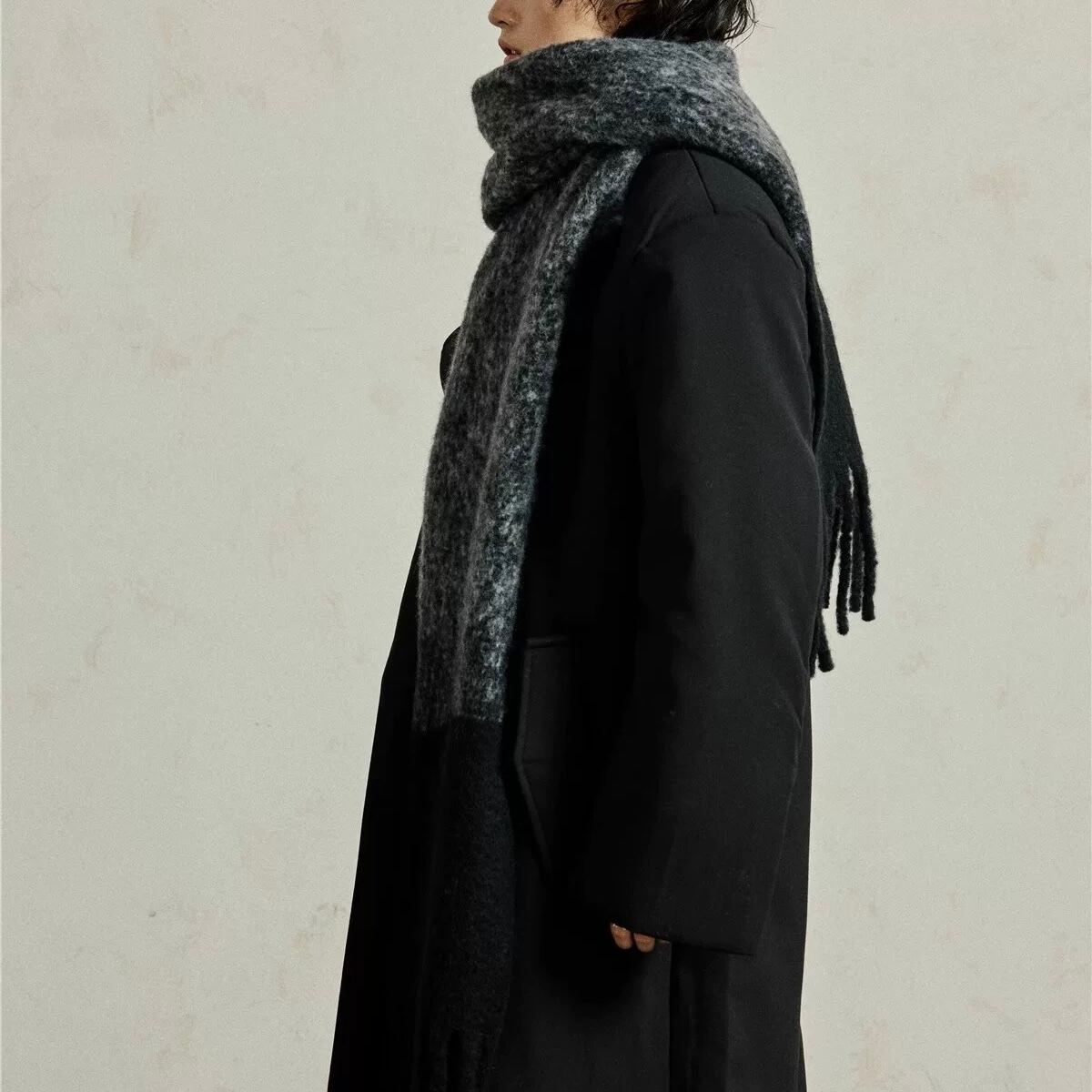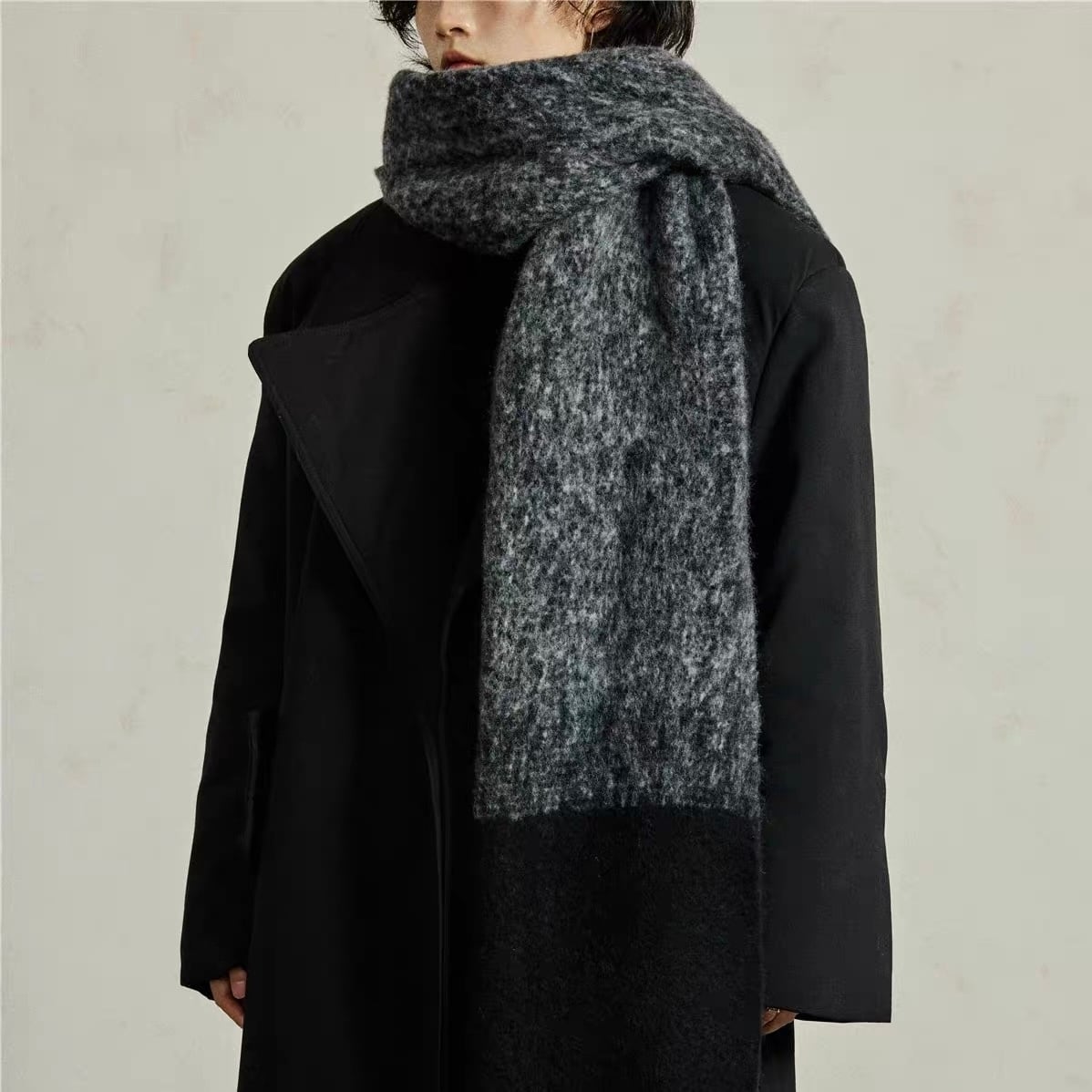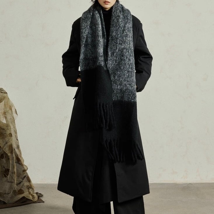 魅力のワイドマフラー。