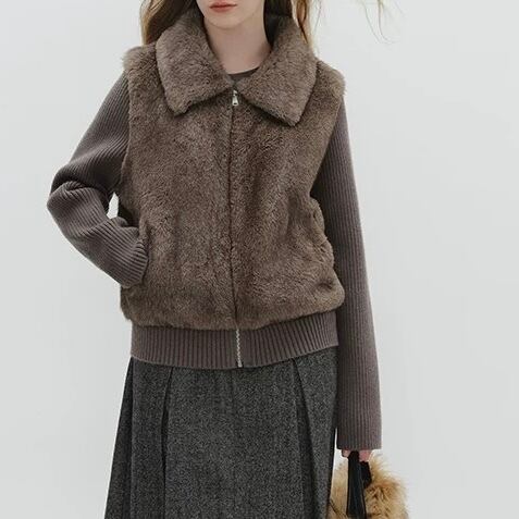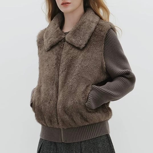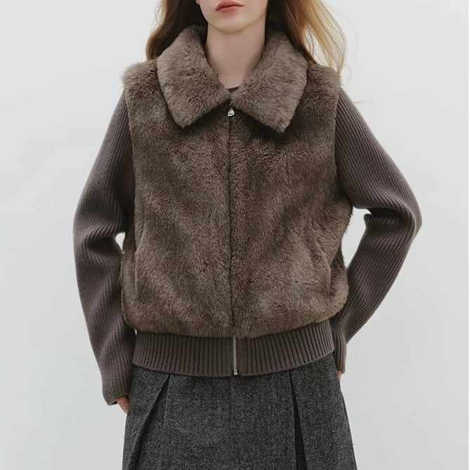 袖は柔らかなニット生地で仕立てられており、どんなコーディネートにも合わせやすい一着です。