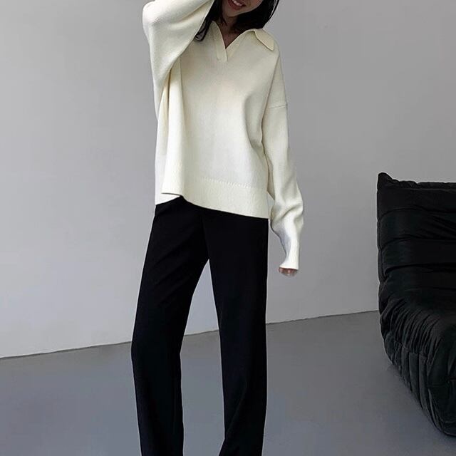 抜け感のあるスキッパーカラーとルーズなシルエットが、大人のこなれスタイルを引き立てる一着です。